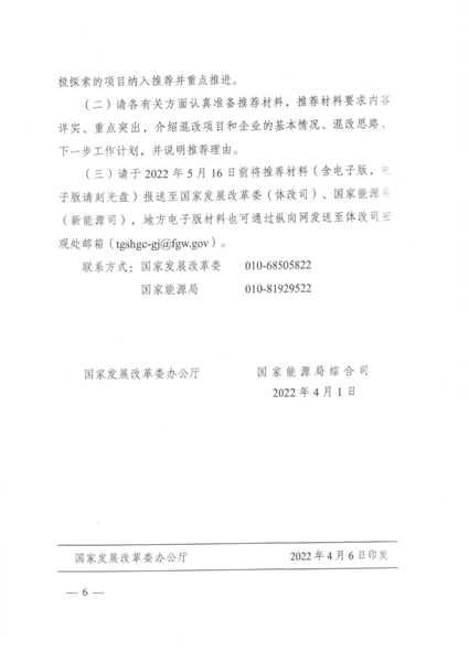 2、有关中央发电企业重点推荐集团下属企业与民企已开展或拟开展的增量混改项目,并与地方政府做好沟通。