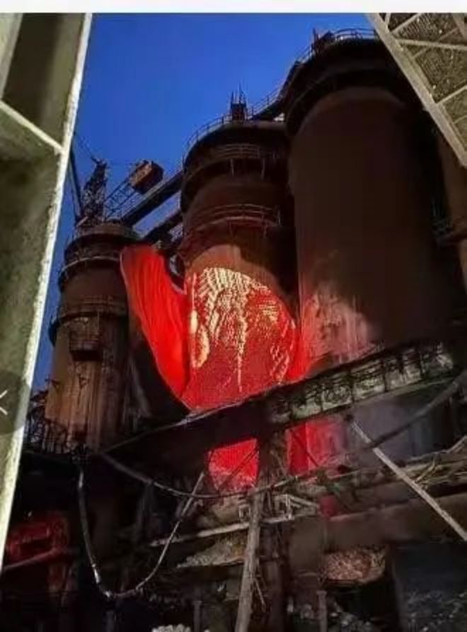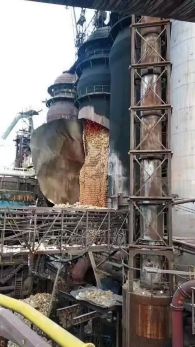 图1 这是发生爆炸的第二天,拍摄的炉壳炉体爆炸后的热风炉状态。