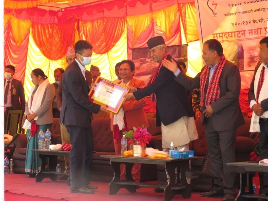 3月19日,由中国电建承建的被誉为尼泊尔“三峡工程”的最大水电站——上塔马克西水电站全面投产,尼泊尔总理谢尔·巴哈杜尔·德乌帕出席投产仪式,向为工程建设所做出突出贡献的机构和个人表示感谢。尼泊尔能源部部长巴姆巴·布萨尔及各级政府高级官员、议会成员、军方代表、尼泊尔电力局各级管理层、项目各参建单位代表等数百人在水电站现场参加仪式。